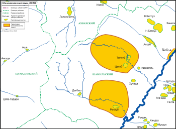 Носители трех диалектов южноахвахского языка находятся в контакте между собой, а также с аварцами. Контакты имеют место в районном центре Шамильского района, с. Хебда, других расположенных рядом населённых пунктах и в г. Махачкале. Общение преимущественно происходит на русском или аварском.