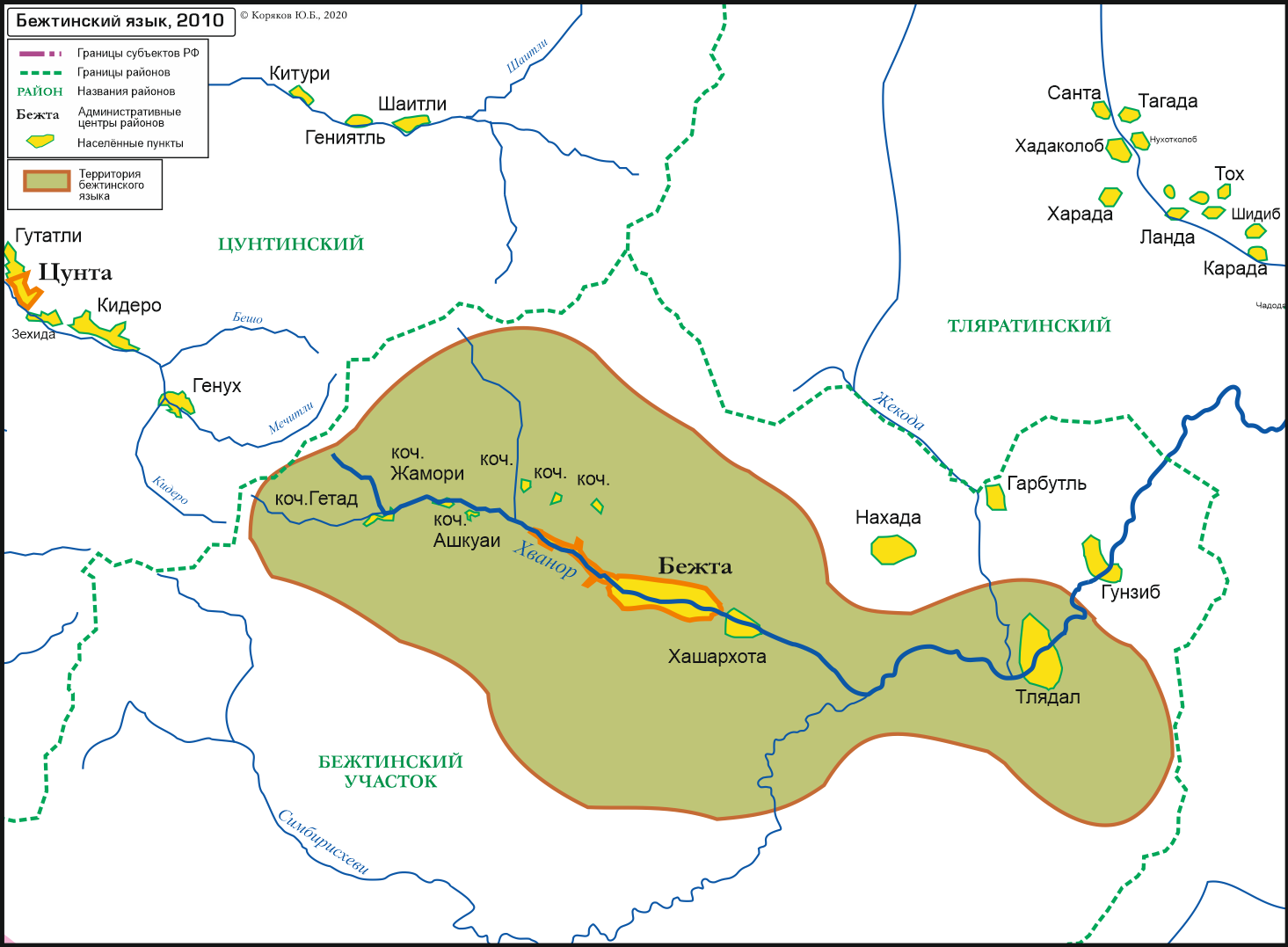 Бежтинский язык имеет три диалекта: собственно бежтинский, тлядальский и хашархотинский.